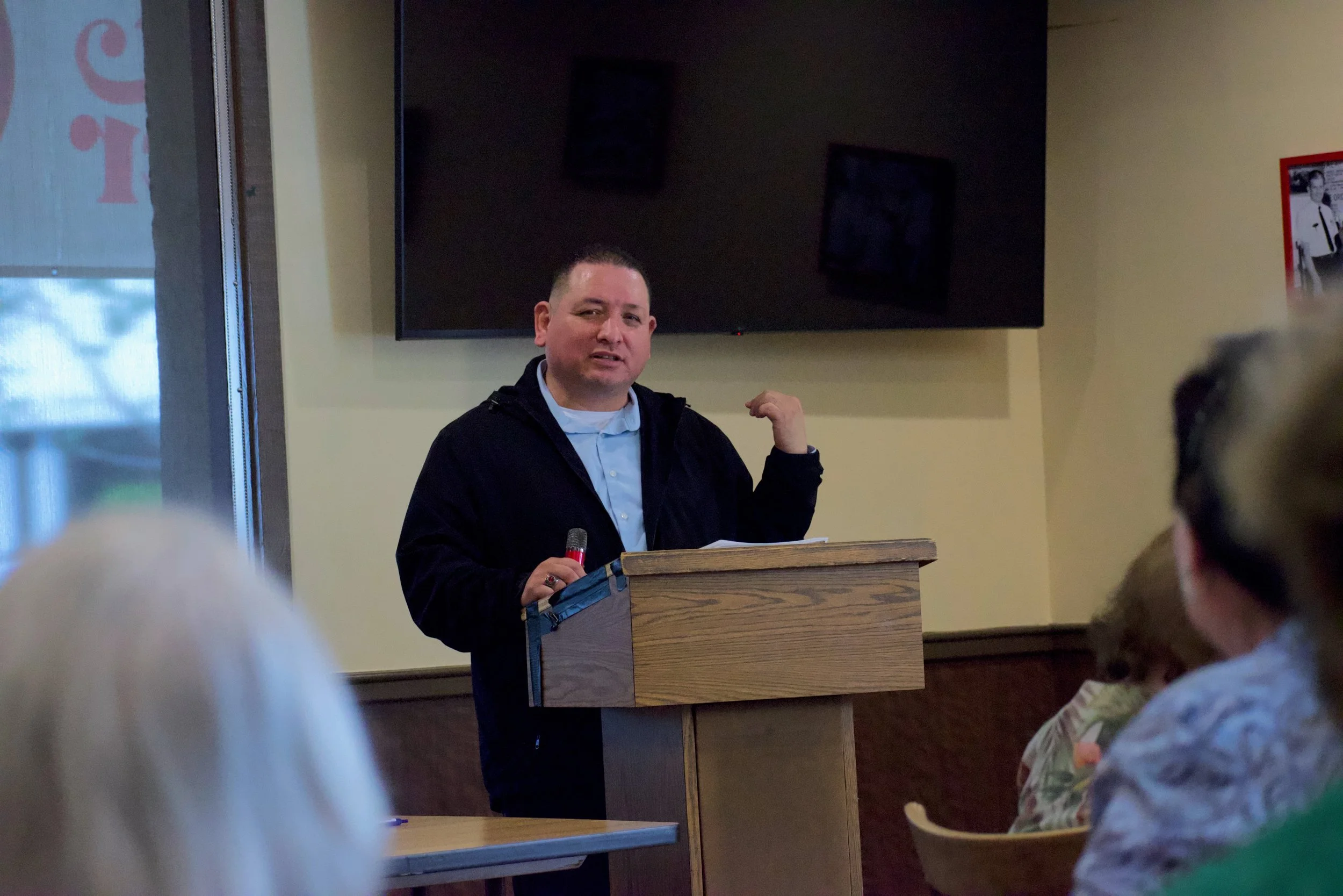 Chris Garcia addresses the Women's California Republican Association in Fullerton on Thursday, April 24, 2025. (Photo by Vince Medina)